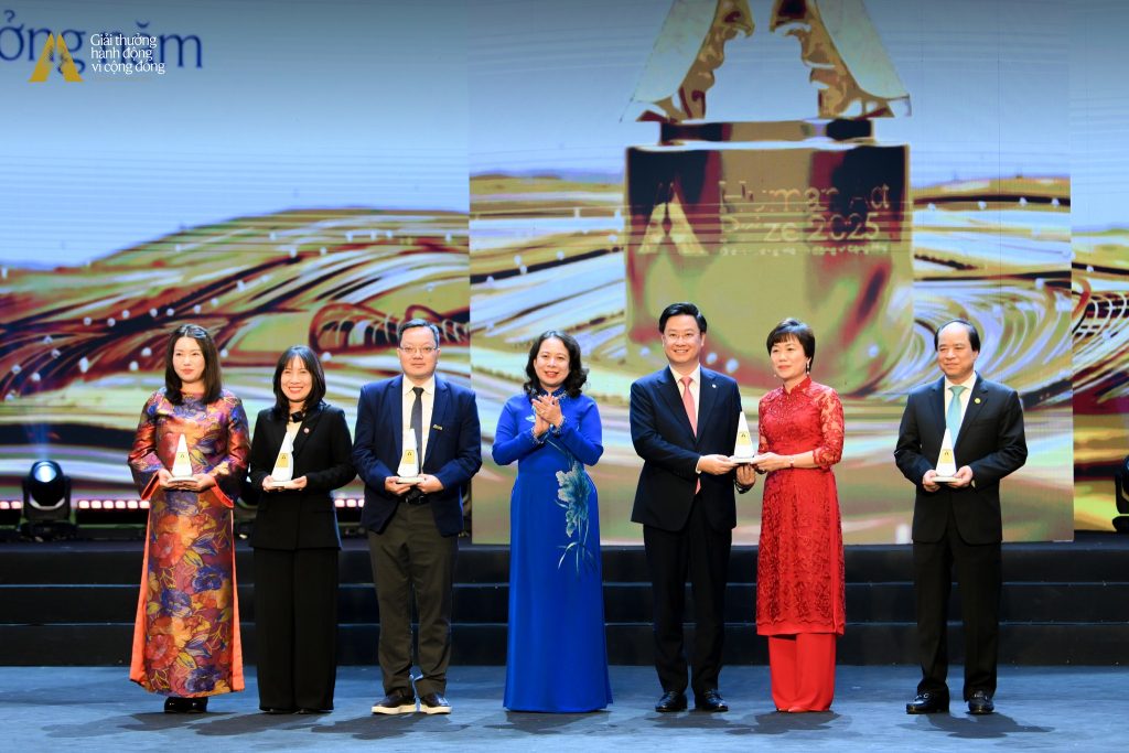Ms. Vo Thi Anh Xuan (in blue), Member of the Central Committee of the Communist Party and Vice President of Vietnam, presented the Human Act Prize of the Year. The ISHC model was one of five projects to receive this award.